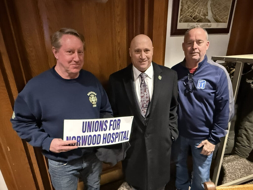 “You’ve heard about emergency departments being overloaded and ambulance times having doubled or tripled,” said Norwood General Manager Tony Mazzucco. “I want to speak for a moment about critical care times. Particularly if you were to have a heart attack in Norwood — or Walpole, or Wrentham, or Sharon, or Canton, or Dedham, or Foxborough, or Mansfield — you are 40 minutes from getting the appropriate care.”